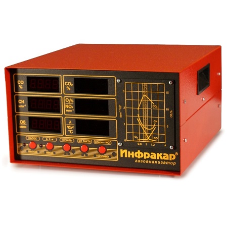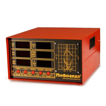 Автомобильный 5-ти компонентный газоанализатор «Инфракар 5М-3.01 предназначен для измерения объемной доли оксида углерода (СО), углеводородов (CН) (в пересчете на гексан), диоксида углерода (СО2), кислорода (О2), окислы азота(NOx) в отработавших газах автомобилей с бензиновыми двигателями. Лямбда + Тахометр + RS-232 + Автослив конденсата + Автоподстройка нуля + Работа с ЛТК и мотортестерами. Внесен в Госреестре средств измерений РФ, Республики Беларусь и Казахстан.