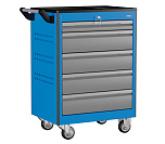 Тележка инструментальная 5 ящиков. Максимально возможная нагрузка на тележку: 300 кг. Максимально возможная нагрузка на ящик: 25 кг. Выдвижные ящики оснащены нескользящими вкладками. В комплекте предусмотрен верхний коврик из АБС, предназначенный для удобного хранения различных мелких деталей.