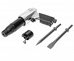 Пневмомолоток с двумя зубилами предназначен для проведения ремонтных работ с возможностью использования ударного механизма. Зубила (2 шт.) длиной 175 мм. Расход воздуха: 110 л/мин. Звуковое давление: 96 дБА. Вибрация: 11 м/с². Скорость: 2100 уд/мин. Ход поршня: 89 мм. Давление: 6,1 атм. Резьба вход. отверстия: 1/4"