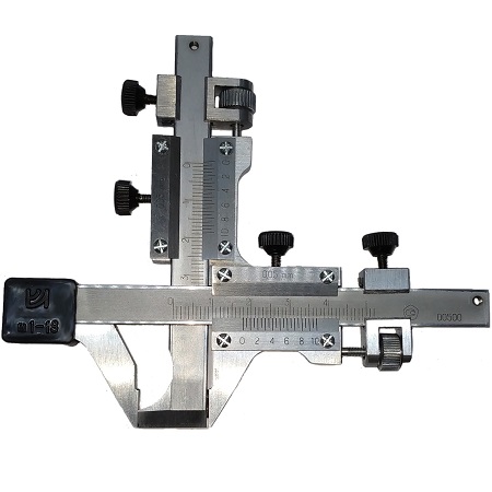 Цена деления 0,05 мм. Диапазон измерения по шкале штанги от 0-33 мм. Для измерения расстояния между разноименными боковыми поверхностями (толщины) зуба цилиндрических прямозубых и косозубых колес внешнего зацепления 11 и 12 степеней точности ГОСТ 1643-81 по постоянной хорде или по хорде делительной окружности. Шкалы штанги, высотной линейки и нониусов выполнены с матовым хромовым покрытием, исключающим бликование. Поставляется в двух вариантах с поверкой и без поверки!