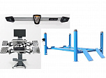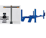 Комплект четырехстоечный подъемник для сход-развала ВСЕХ авто г/п.-4т. с ручной траверсой. Гарантия 2года. В комплекте: анкерные болты 16шт. + противооткатные ограничители 2шт. + противооткатные упоры 2шт. Для любых стендов сход-развал. ВАЖНО!!! ДЛИНА ПЛАТФОРМЫ - 4130мм. — это позволяет прокатывать авто на подъёмнике. Подъём 1850мм, Между колоннами 2775 мм. Усиленный — 960кг металла. + T 7202 TAB Стенд сход-развал 3D. 2 неподвижные видеокамеры. Напольный. Серия Basic. Для работы на яме или подъемнике. Высокая точность и скорость работы-40 кадров в секунду. База данных 65 000 авто.