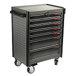 В комплекте: Наборы инструмента 225 предметов + Тележка для инструмента JTC-3931. 7 выдвижных ящиков. Удобная большая ручка. Все ящики снабжены быстросъемными полозьями на роликах, полностью выдвигаются и легко вынимаются из тележки. Каждый ящик оборудован двумя индивидуальными фиксаторами, которые предотвращают произвольное открытие ящика во время передвижения тележки. Наличие центрального замка.