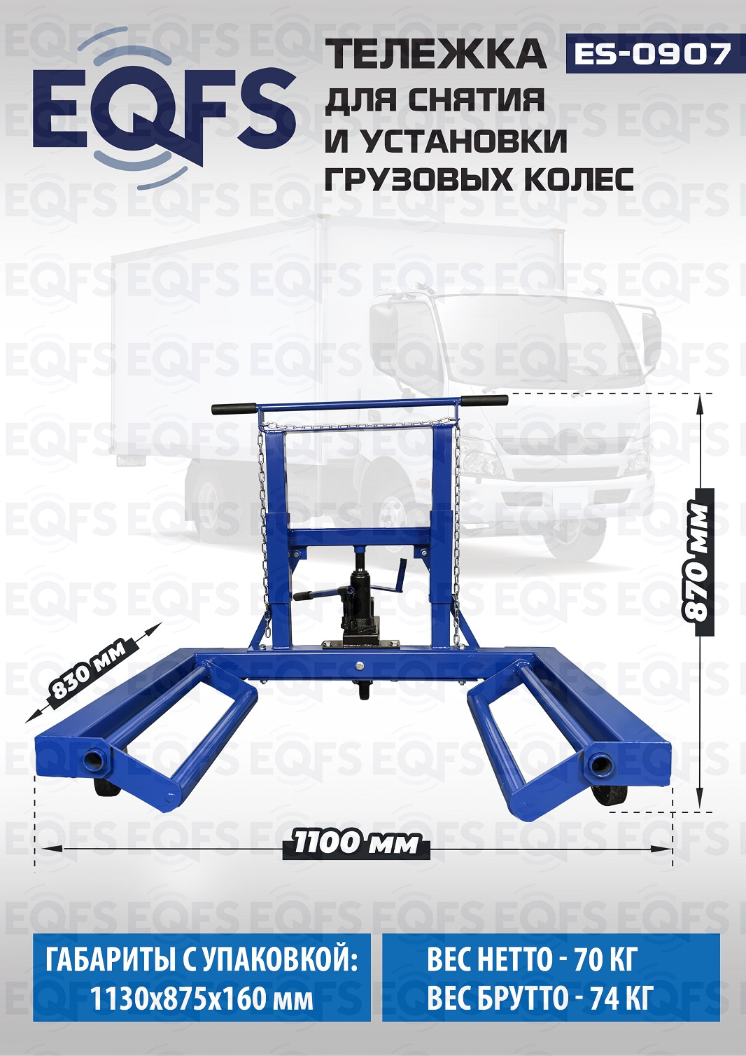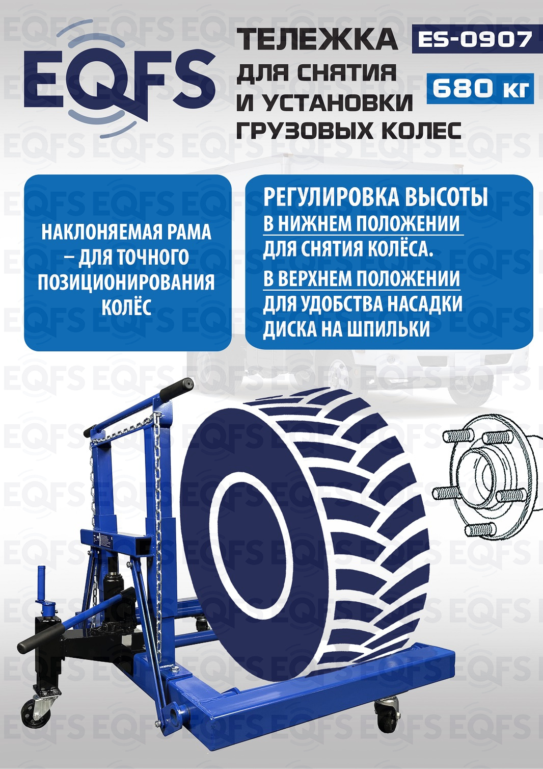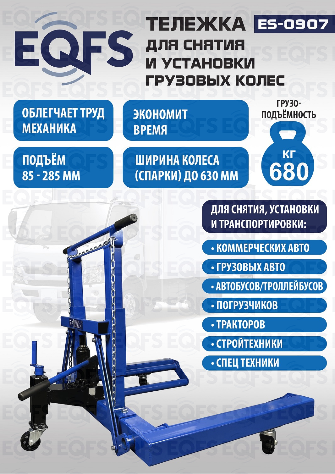 Облегчает труд механика. Простая в эксплуатации, маневренная и удобна в перемещении по любой поверхности. Тележка оборудована страховочными цепями для предотвращения падения колеса. Для снятия и транспортировки колес и колесных пар грузовых автомобилей, автобусов, специальной техники. Максимальная грузоподъемность 680кг. Мин / макс высота подъема 85 - 285 мм.