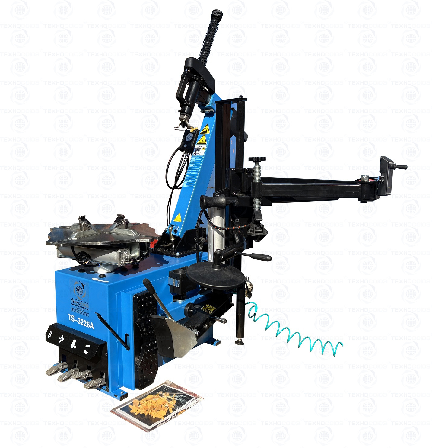 Автоматического шиномонтажного стенда TS-3226А предназначен для монтажа и демонтажа шин легковых автомобилей, внедорожников и легких грузовиков с размером колес 11-24 дюйма. Усилие пневмоцилиндра в 2500 кг. В комплекте: полноценная 3-й рука для работы с жесткой и низкопрофильной резиной RUNFLAT. + встроенный бустер  24 литра (взрывная подкачка) + пистолет для подкачки шин + монтажка + регулятор давления с влагоотделителем и манометром.