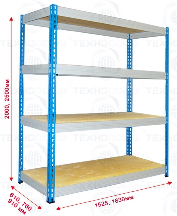 Стеллажи полочные, сборно-разборные. Особенности конструктивного исполнения стеллажа позволяют производить сборку без дополнительных крепежных элементов. А профиль балки МКФ позволяет использовать стеллаж в 2-х вариантах: одна сторона предназначена для настила, другая – для хранения автомобильных колес. В 1-м варианте каждая полка (ярус) состоит из продольных и поперечных) балок, на которых размещается усиленная фанера, во 2-м – только продольные и поперечные балки. Балки стеллажа крепятся к стойкам при помощи двух замков с зацепами. Стеллажи с представленными размерами позволяют хранить колеса радиусом от 15” и выше.