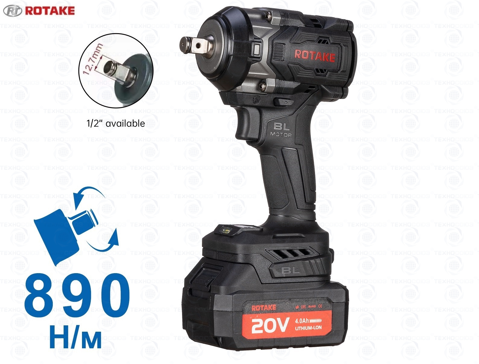 Гарантия 12 мес. Ударный. Профессиональный. До 890Нм. 3 скорости. Реверс. Квадрат 1/2". Белый светодиод подсветки. Индикатор заряда.  20В. (2х4Ач аккумулятора РАЗМЕР БОЛЬШЕ — ПРОСЛУЖИТ ДОЛЬШЕ!), кейс и зарядное устройство в комплекте. Бесщеточный двигатель. Антивибрационная ручка. Для слесарных работ и шиномонтажа.