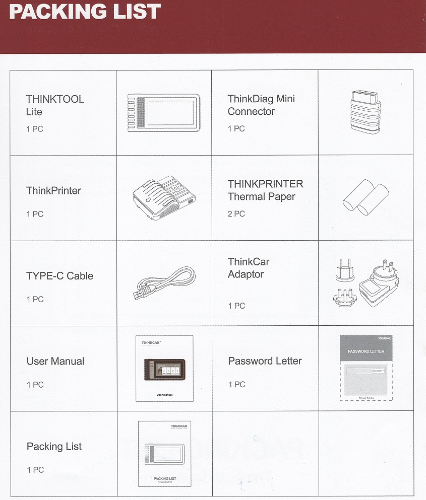 · Инструкция пользователя ThinkTool Lite– 1 шт