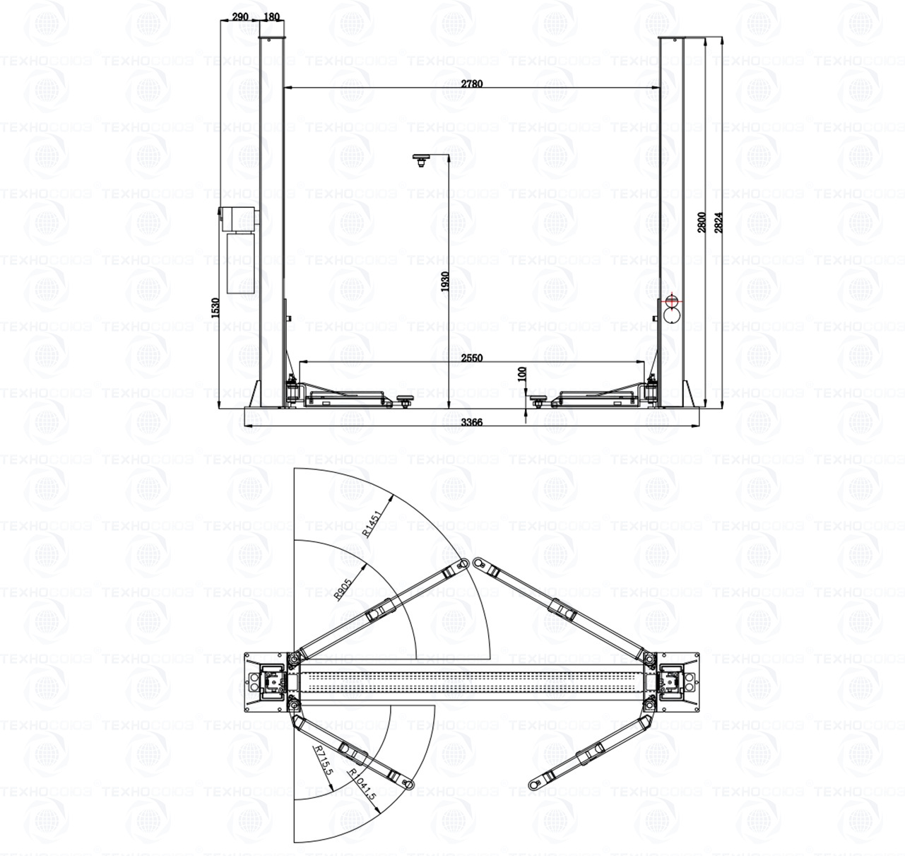 Расстояние между колонами подъемника, мм. 2780