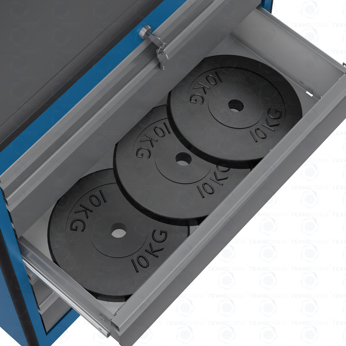Максимально допустимая масса груза, равномерно распределенного по поверхности любого выдвижного ящика 30 кг. Максимально допустимая масса груза, равномерно распределенного по крыше тележки 25 кг. Максимально допустимая масса размещаемого груза в тележке 220 кг. В тележке инструментальной TNC 950.4 Р установлены три средних и один большой ящик. Внутренние размеры средних ящиков: 135 х 561 х 392 мм. Внутренние размеры больших ящиков: 210 х 561 х 392 мм.