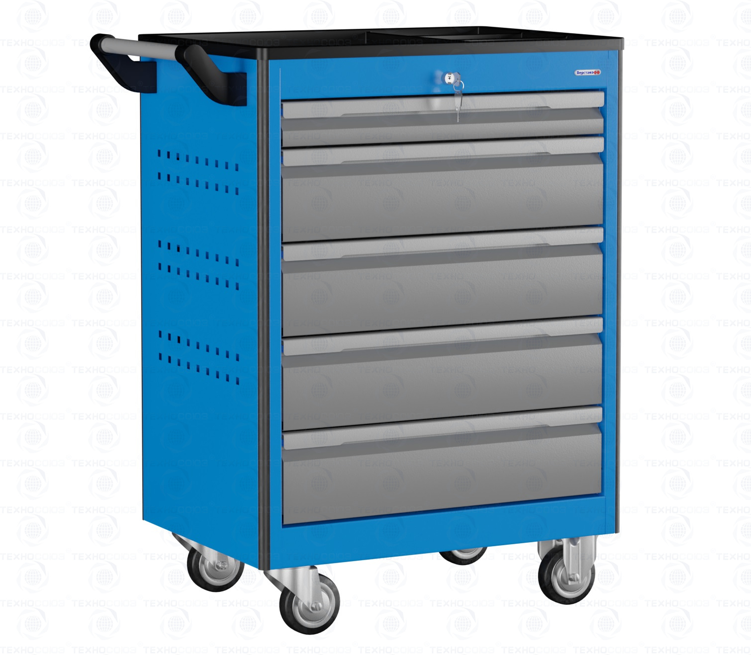 Тележка с 5 выдвижными ящиками предназначена для хранения и транспортировки к рабочему месту инструментов, приборов и другой оснастки, необходимых для работы на сервисных и слесарных участках, а также в цехах заводов и на промышленных предприятиях.